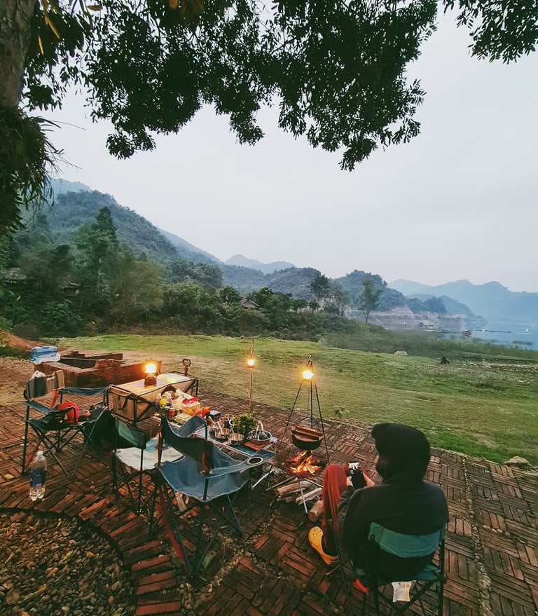 Hữu Thảo homestay nằm ở xã Hiền Lương - Huyện Đà Bắc. Chúng mình biết đến homestay vì chủ nhà là 1 người cũng rất đam mê cắm trại. Ở đây có bãi cỏ rộng cạnh suối, cạnh hồ thủy điện Hòa Bình, rất lý tưởng để cắm trại, chèo thuyền,.... Về dịch vụ, khu vực homestay có lưu trú và ăn uống, bể bơi, điểm cắm trại ở xa hơn về phía hồ nên bạn gần như là tự túc mọi thứ ( có thể dùng nhà tắm ). Trước khi đến đây bạn nên liên hệ trước với homestay để tham khảo tình trạng bãi cỏ nhé ạ.