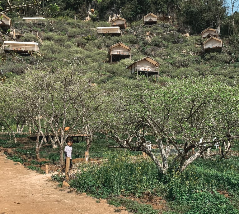 Lều Mây - đúng với tên gọi của mình, nơi đây là địa điểm cắm trại đầy lý tưởng ở Mộc Châu. Nằm trên đường tới thung lũng mận Mu Náu, Lều Mây có 1 khu vườn mận cổ rộng lớn và đôi khi ở đây có thể săn mây vào sáng sớm. Thời điểm thích hợp để tới đây là vào mùa hoa mận nở. Ở Lều Mây có cả dịch vụ glamping và cắm trại, với điện nước khu sinh hoạt đầy đủ, tuy nhiên đường lên rất dốc, yêu cầu tay lái cứng và xe 2.0 trở lên ( nếu không lên được cần thuê xe máy khá tốn chi phí )